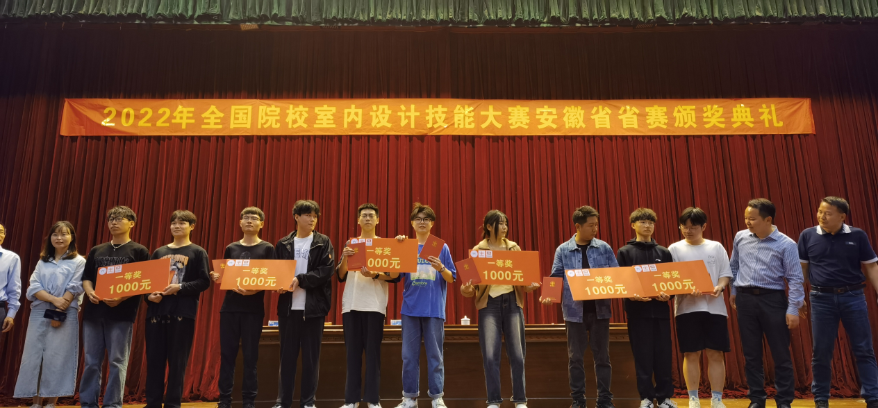 2022年全国院校室内设计技能大赛安徽省省赛颁奖典礼于2023年5月26日举办,资源开发系建筑装饰工程技术专业在校内共选拔10组20名学生参加了此次比赛。通过几个月的专项培训,参赛队员们刻苦训练、努力争先。最终这10组队员不负众望,荣获团体一等奖1项、二等奖3项、三等奖6项,所有参赛小组均获等级奖。